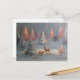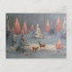 Tarjeta Postal Navideña De Ciervos Antiguos En Bosque Nevado Con Árboles De Navidad Rosados. Este diseño presenta ciervos antiguos en el bosque nevado rodeados de árboles de navidad rosados. Qué hermosa escena retro de vacaciones.