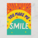 Tarjeta el día de San Valentín con el mensaje "Me haces sonreír". Colores palleta: colores naranja, amarillo, azul, violeta, brillante y vibrante og valentines tarjeta Feliz Día de San Valentín!