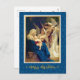 Clásica carta de vacaciones de los ángeles de la Natividad musical "Feliz Navidad". La canción de los ángeles (también conocida como la Virgen, el Niño y los Ángeles). La pintura representa a la Virgen María criando al niño Jesús mientras tres ángeles alados tocan instrumentos musicales (un violín y un laúd). La escena está dentro de un rico borde de marrón enmarcado por un acento metálico de oro que complementa el grabado en relieve y cursivo mensaje de "feliz navidad" en la parte inferior. Esta tarjeta es perfecta para aquellos que aprecian las imágenes clásicas, religiosas o tradicionales de los Navidades y quieren enviar un mensaje sincero y reverente a la familia y amigos durante las vacaciones. Obra de arte: Basada en la canción de los ángeles de Bouguereau. Tema: Tradicional, Religiosa, Natividad, Bella Artes.