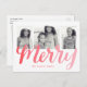 Envíe sus saludos de vacaciones con estilo con esta encantadora postal de 3 fotos con ilustraciones caligráficas a mano y acuarela. Ahorra dinero en sobres y agrega una foto al dorso de tu tarjeta.