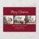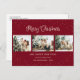 Elegantes postales personalizados de Navidades de fotos rojas con un collage de fotos y un hermoso título de guión con letras a mano y caída de la nieve. Personaliza fácilmente esta foto roja, tarjeta postal Feliz Navidad con tus imágenes, texto, año y un nombre familiar. También puede cambiar el fondo y la fuente a cualquier color.