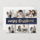 Una simple tarjeta de Navidades con seis grandes aberturas fotográficas con escritura dorada alegremente con letras navideñas. El color de fondo es completamente personalizable para coincidir fácilmente con el esquema de color de las fotografías.