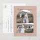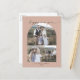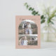 Este moderno collage de fotos de salmón de arco familia años nuevos postales de vacaciones es el sencillo y perfecto saludo de vacaciones. El diseño bohemiano de color rosa naranja presenta una tipografía industrial única con letras de estilo minimalista. Personaliza tu postal con 3 fotos familiares, tu apellido, nombres y año. Incluir un año opcional en revisión o boletín familiar en la parte posterior.