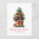 Our wonderful little Christmas tree in a rustic wood pot is so cute for the holiday season. We love the colorful bows and ribbons. It is a vintage watercolor, but you wouldn’t know it because it looks so modern and trendy. We hope you love it and will enjoy sending this “Merry Christmas”holiday postcard to your friends and relatives this season.