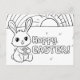 A cute rabbit holds an Easter egg next to the words "Hoppy Easter" on this black and white coloring Easter postcard. A fun and personal way for your child (or you!) to send an Easter blessing.
