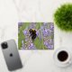 Postal Festiva Con Relieve Metalizado Abeja de buey alimentada con flores de lavanda