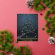 Postal Festiva Con Relieve Metalizado Árbol de Navidad Abstracto Azul Alegre Brillante