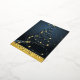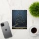 Árbol abstracto de Navidad en azul medianoche suave y resaltes de lámina metálica. Envía saludos de la temporada con esta tarjeta de vacaciones contemporánea. Personaliza con tu propio texto. Diseño artístico especialmente para tarjetas de saludo de vacaciones personalizadas que no son religiosas para ser apropiadas en cualquier hogar. Tus nombres de firma están ubicados en la parte posterior.