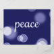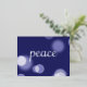 Esta elegante tarjeta con un atractivo intemporal es una tarjeta de vacaciones perfecta para su negocio. Un simple mensaje de paz en la tipografía de escritura de Relieve metalizado plateado contra un fondo de azul profundo con baudibles de luz plateada y blanca o luces de bokeh. Personalizar tu mensaje, saludo y nombre de la empresa en la parte posterior de la postal. Un sentimiento encantador para las vacaciones.