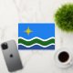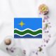 Postal con diseño con bandera de Duluth, Minnesota. Una bandera azul, verde y blanca con una estrella amarilla