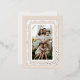 Send winter holiday greetings to family and friends with this real metallic foil Christmas postcards that features classic traditional style typography and personalized text, your custom portrait orientation photo, plus room for a longer message on the back. The warm beige background is an elevated and on-trend choice when paired with silver foil. The festive yet classic border motif of evergreen and holly branches gives an air of timeless holiday cheer to the design while the postcard format is budget friendly requiring lower cost postage.