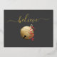 Postal Festiva Con Relieve Metalizado Campana de Navidad BELIEVE con hoja de oro