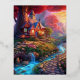 Postal Festiva Con Relieve Metalizado Casa de fantasía de sol en los bosques