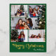 Postal Festiva Con Relieve Metalizado Clásico Simple Verde 5 Foto Feliz Navidad Gold