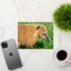 Postal Festiva Con Relieve Metalizado Coati de cola anillada en la hierba