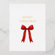 Carta postal de Navidades de Relieve metalizado con un diseño simple y minimalista con un arco rojo junto con el saludo "Feliz Navidad" en Relieve metalizado real. Utilice la plantilla para agregar su mensaje personalizado.