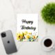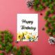 Postal Festiva Con Relieve Metalizado Cumpleaños floral