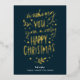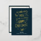 Deséenle Feliz Navidad Blue Gold Script Non Photo Business Real Relieve metalizado Holiday Postcard. Envíe saludos de vacaciones a sus seres queridos con esta tarjeta festiva y moderna. Todos los textos están preorganizados para que puedas personalizarlos fácil y rápidamente con tus propios detalles. Felices fiestas!