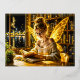 Postal Festiva Con Relieve Metalizado Diez de hadas lindo leyendo luz mágica chispas