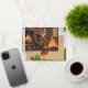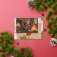 En esta encantadora tarjeta postal de Navidad, Sr. Zorro se sienta en medio de un telón de fondo de alegría festiva, sonriendo contento en su cómodo sillón. con un brillo en sus ojos, emana un aire de calidez y alegría.
