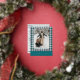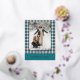 Esta tarjeta postal de saludo navideño se destaca por su diseño elegante y único. Cuenta con un saludo atemporal de "Felices Fiestas" impreso en auténtico foil de oro, personalizable según tus preferencias, sobre un diseño de patrón de cuadros en azul turquesa, blanco y rojo granate. La parte delantera ofrece espacio para el nombre de tu familia, foto y saludo estacional personalizado, mientras que la parte trasera es perfecta para agregar un mensaje estacional personalizado o poema. Es una forma elegante de enviar tus deseos navideños.