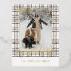 Esta tarjeta de vacaciones se destaca por su diseño elegante y único. Cuenta con un saludo atemporal de "Felices Fiestas" impreso en lámina de oro real, personalizable según su preferencia, sobre un diseño de cuadros en colores neutros y naturales de la tierra. La parte delantera ofrece espacio para el nombre de su familia, foto y saludo de temporada personalizado, mientras que la parte trasera es perfecta para agregar un mensaje o poema estacional personalizado. Es una forma elegante de enviar sus deseos de vacaciones.