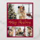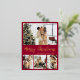 Elegante caligrafía Minimalista rojo y guión de Relieve metalizado dorado 4 Collage de fotos Feliz postal navideña. Esta plantilla festiva de cuatro (4) fotos para tarjetas navideñas es de cuatro (4) festividades, mimística, y presenta un collage de fotos de bonito. El texto de bienvenida de "Feliz Navidad" está escrito en un hermoso tipo de letra de guión de broche con letras a mano en oro sobre fondo de color rojo burdeos. Al revés con una plantilla de texto de saludo con un pequeño garabato cardíaco en blanco y una plantilla de foto. Tarjeta de saludo de bonito para su familia y amigos en temporada de vacaciones para Navidades.