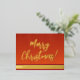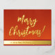 Postal Festiva Con Relieve Metalizado Elegante Red y Gold Script Feliz Navidad