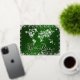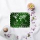 El mapa del mundo en diamantes y tipografía FOIL hermosa 'Paz Mundial' - mensaje de vacaciones - fondo en verde esmeralda y copos de nieve plateados elegantes y sorprendentes que rodean este fondo resaltado en verde esmeralda con texto de escritura elegante - Personalizado con su mensaje en la parte posterior y nota de firma: NOTA: NO hay diamantes/gemas reales en esta tarjeta - son creados artísticamente para parecer reales