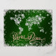 Postal Festiva Con Relieve Metalizado Esmeralda Verde de la Paz Mundial y Diamantes