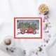 Postal Festiva Con Relieve Metalizado Estampilla de rehenes de camionetas rojas navideña