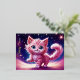 Postal Festiva Con Relieve Metalizado Fantasía rosa flauta gatito ojos azules brillantes