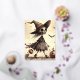 Postal Festiva Con Relieve Metalizado Fantasma con la bruja gorra Halloween