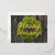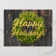 Postal Festiva Con Relieve Metalizado Felices Fiestas País Rústico Pino Wreath Wood