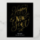 Postal Festiva Con Relieve Metalizado Feliz Año Nuevo Black Gold Script moderno no foto
