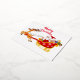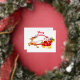 ilustracion personalizado de Santa Claus montado en trineo rojo y dorado jalado por un reno, con las palabras "Feliz Navidad" escritas arriba. Santa se representa con barba blanca, mejillas rosadas y un gorra rojo, sosteniendo las riendas del reno. El trineo está lleno de regalos y una muñeca. El reno es marrón con un arnés rojo y se muestra en el aire medio, como si volara. El estilo es sencillo y colorido, que recuerda a un ilustracion infantil.