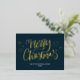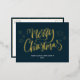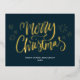 Postal Festiva Con Relieve Metalizado Feliz Navidad Blue Gold Calligraphy Business