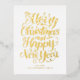 ¡Feliz Navidad y Feliz Año Nuevo! Envíe sus deseos de vacaciones a amigos y familia con esta postal de Navidades de personalizable. Esta postal de Navidades personalizados presenta caligrafía moderna. Personalice agregando sus detalles. Esta postal de vacaciones de Relieve metalizado dorado está disponible en otros colores y material de cartón. Los elementos coincidentes están disponibles.