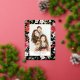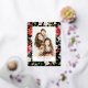 Postal Festiva Con Relieve Metalizado Flores de invierno festivas Patrón de foto negra