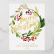 Feliz Navidad acuarela floral tarjeta de Relieve metalizado Holiday. Hermoso follaje pintado con acuarela y texto de escritura moderno. Parte de una colección.