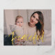 Postal de vacaciones moderna con tu foto horizontal con "Pacífica" mostrada en un sobre de guion con letras de Relieve metalizado dorado. Personalice la postal de vacaciones de Relieve metalizado añadiendo su nombre y el año. La parte posterior de la tarjeta postal muestra la dirección de retorno y el mensaje de personalizado.