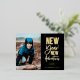 New Year New Adventures, postal de Relieve metalizado fotográfico de vacaciones. Presenta una moderna tipografía de Relieve metalizado de moda en negro con una sola foto en la parte delantera.