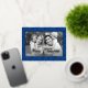 Moderno Navidades de fotografía elegante estrella dorada Relieve metalizado azul marino tarjeta de vacaciones. Consejos para la foto: tu foto se convertirá automáticamente a Blanco y Negro después de ser subida.