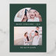 Esta hermosa tarjeta postal de Navidad presenta una cuadrícula de imagen de arco moderno y dos de tus fotos familiares favoritas, con un estampado de puntos nevados de oro auténtico sobre un fondo verde. La parte posterior incluye un dulce mensaje navideño con dirección de remitente. Este diseño simple y festivo es una forma perfecta de enviar saludos navideños a familiares y amigos.