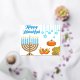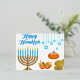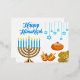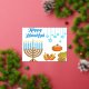Postal Festiva Con Relieve Metalizado Hanukkah Menorah with Candles and Traditional Item