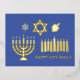 Postal Festiva Con Relieve Metalizado Happy Hannukah menorah dreidel