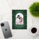 Este hermoso saludo de Navidades presenta un elegante Relieve metalizado botánico de oro real enmarcado con un arco de fotos en un frente verde, y dirección de retorno y un mensaje editable de vacaciones en la parte de atrás.