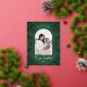 Postal Festiva Con Relieve Metalizado Hermosa foto verde del marco botánico