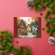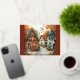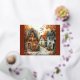 Postal Festiva Con Relieve Metalizado Ilustracion de Aldea Otoño Naranja Europea