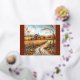 Postal Festiva Con Relieve Metalizado Ilustracion de otoño de un granero rojo rústico